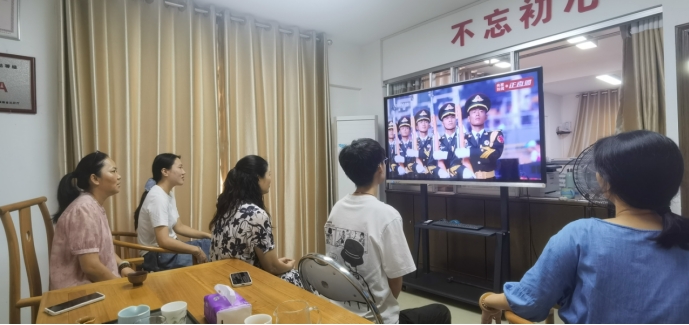 直播过程中,秘书处全体人员精神饱满、神情肃穆,聚精会神地注视着屏幕。当护旗方队迈着铿锵有力的步伐护卫着国旗庄严行进,当威武的受阅部队以严整的军容、昂扬的斗志依次通过天安门广场,当各类先进装备整齐列阵、气势恢宏地展示在世人面前时,大家无不心潮澎湃、热血沸腾,不时报以热烈的掌声。
